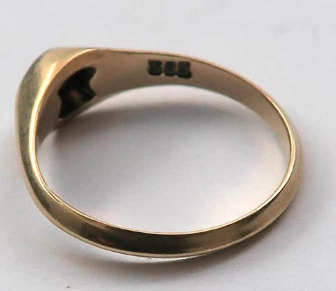 Ring af 14 kt. guld med let forhøjet skinne, pyntet med brillantsleben diamant på ca. 0,10 ct. Ring Str. 53½, samlet vægt ca. 2,8 gr.