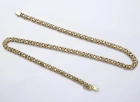 Flad kongekæde af 14 kt. guld med 8 x 3 mm. led, L. 62 cm., vægt ca. 93 gr. Certifikat fra 2014 med oplysning om nyprisen på kr. 40.000.- mefølger.