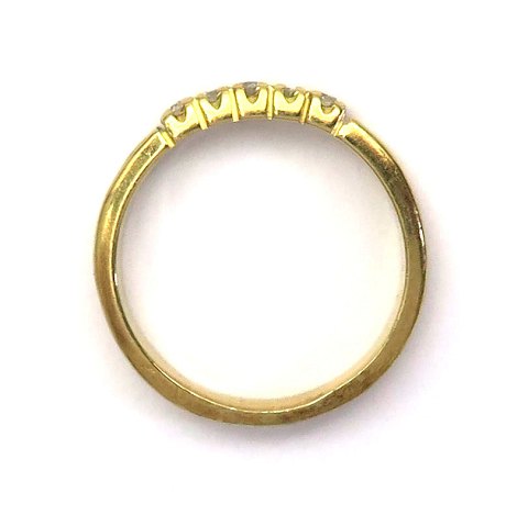 Ring af 18 kt. guld, prydet med 5 brillantslebne diamanter på række, samlet 0,15 ct. Ring Str. 50, samlet vægt ca. 3 gr.