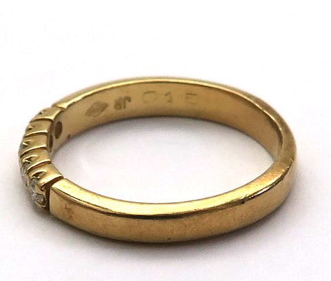 Ring af 18 kt. guld, prydet med 5 brillantslebne diamanter på række, samlet 0,15 ct. Ring Str. 50, samlet vægt ca. 3 gr.