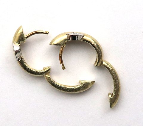 Par ørestikker af 14 kt. børstet guld, hver prydet med brillantsleben diamant på 0,10 ct., samlet 0,20 ct. Stikker 14 x 17 mm.