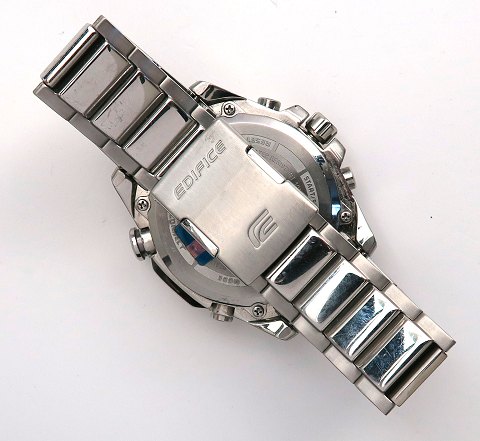 Casio Edifice Tough Solar herrearmbåndsur, ref. BBQW 005 i urkasse og med lænke af stål. Sort skive med stregindikation, central og separat sekundviser, dag- og datovisning i #8-12 position samt chronograph funktioner, Bluetooth m.v. Solar Quartzværk. Urkasse diameter 45 mm.