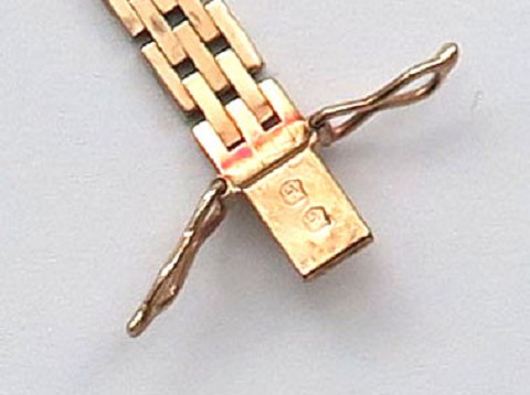 Collier af 8 kt. guld med murstensmønstrede led, front med segmenter i forløb. L. 41 cm., vægt ca. 24 gr.