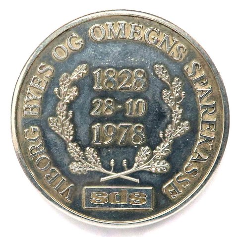 Avers: Viborg byes og omegns sparekasse 1828 28/10 1978. Revers: Viborg gl. rådhus. 1728 28/9 1978. Sparekassens 1. hjemsted