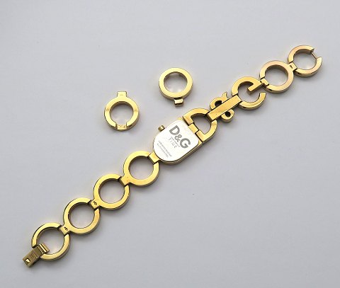 D&G damearmbåndsur model *TIME* med D&G lænke af stål. Metallic grå skive med stregindikation. Urkasse 23 x 18 mm. Quartzværk.