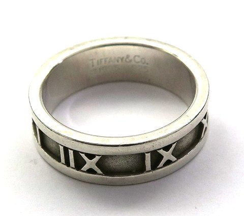 Tiffany *Atlas* ring af sterling sølv, skinne rundt om dekoreret med romertal. Ring Str. 56½. Tiffany & Co. 2003. Vægt ca. 6,5 gr.