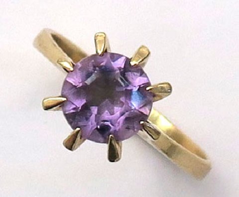 Ring af 14 kt guld, prydet med facetsleben 9 mm. ametyst. Ring Str. 60½