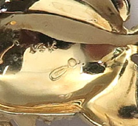 Broche i form af scalare af 14 kt. guld, L. 27 mm., vægt ca. 5 gr.