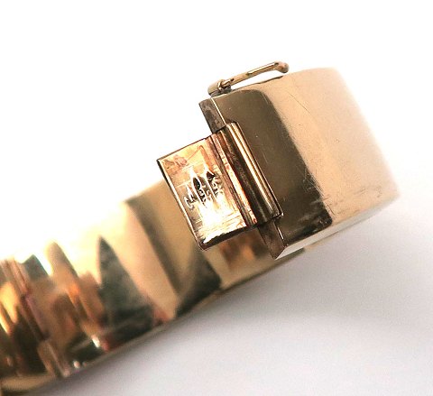 Oplukkelig armring af 8 kt. guld, B. 17 mm., vægt ca. 29,5 gr.