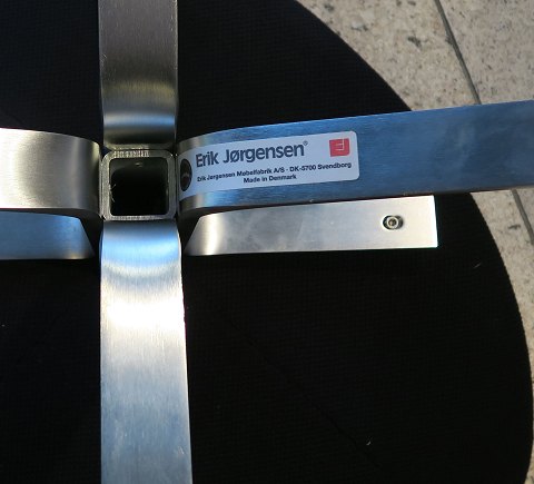 Poul Volther, skammel EJ 5 F til Corona hvilestol med stel af børstet stål, betrukket med sort, grovvævet stof. Skamlen fremstår velholdt. Fremstillet hos Erik Jørgensen.