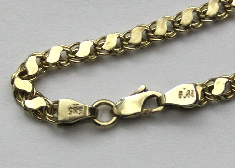 Halssmykke af 14 kt. guld med tværgående led, L. 46 cm., vægt ca. 9,5 gr.