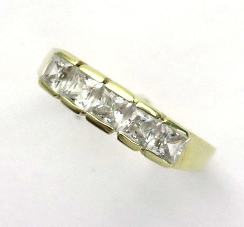 Ring af 14 kt. guld med 5 square-cut, klare sten