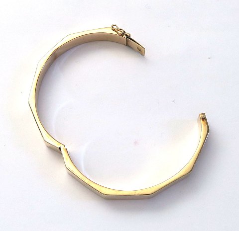 Polygon armring af 14 kt. guld, indvendig 59 x 54 mm., oplukkelig. Vægt ca. 14 gr.