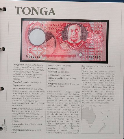 Ringbind med 70 sider med beskrivelsestekst og pengeseddel fra det pågældende land. De fleste sedler er ucirkulerede og beskrivelsen er på norsk. Udgivet af Samlerhuset i Trollåsen - Norge. Albummet er fløjlsbetrukket og leveres i kassette. Kun enkelte sedler er afbilledet.