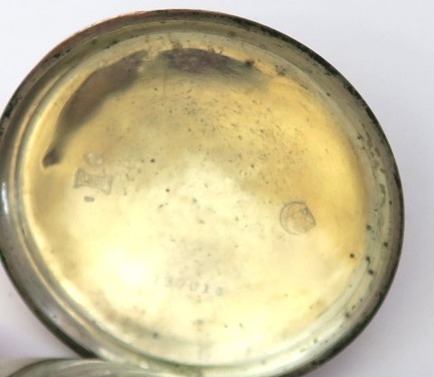 Schweizisk lommeur af sølv med hvid emailleret skive, arabertal og separat sekundviser. Glaskrans af sølvplet. Urkasse diameter 50 mm.