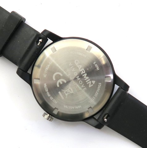 Garmin Vivomove herrearmbåndsur, ref. nr. IC-1792A i urkasse af rustfrit stål. Sort skive med stregindikation, central sekundviser,
