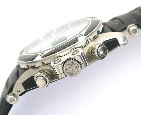 Festina chronograph herrearmbåndsur, ref. nr. 16272 i urkasse af stål. Metallic blå/sort skive med separat sekundviser, stregindikation, dag/datovisning i #1-3 positionen og chronograph funktioner. Quartzværk, urkasse diameter 45 mm. lærredforstærket gummirem med metalspænde.