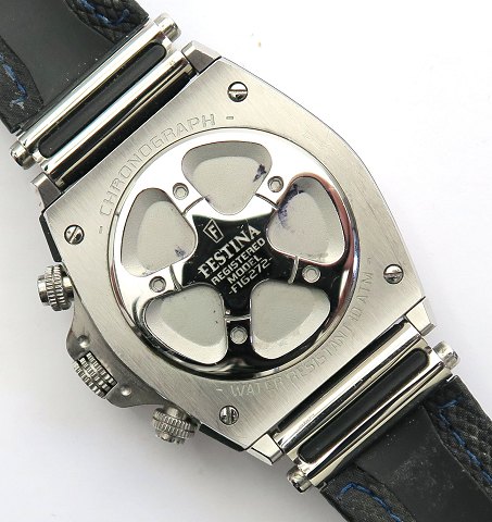 Festina chronograph herrearmbåndsur, ref. nr. 16272 i urkasse af stål. Metallic blå/sort skive med separat sekundviser, stregindikation, dag/datovisning i #1-3 positionen og chronograph funktioner. Quartzværk, urkasse diameter 45 mm. lærredforstærket gummirem med metalspænde.