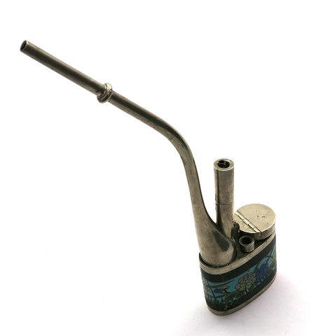 Østerlandsk opiumpibe af emailledekoreret sølvplet