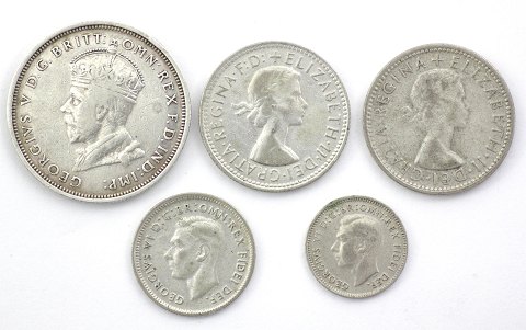 Australien, 3 pence, 6 pence, 2x shilling og florin (jubilæum), George V - Georg VI - Elisabeth II, sølv