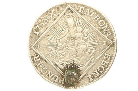 Ungarn, 30 Krajczar, 1755, sølv, 7,03 gr., .833 sølv, KM# 357.2 (hul forsøgt udbedret)