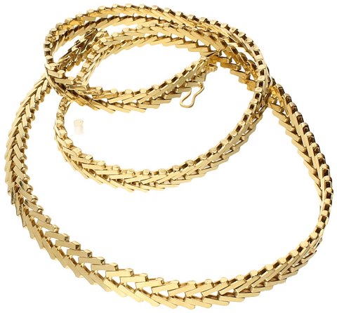 Halskæde af guld 14 kt. Genevemønster eller sildebensmønstret