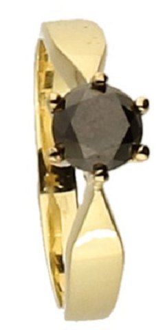 Ring af guld 14 kt. prydet med stor sort diamant ca. 0.75 ct