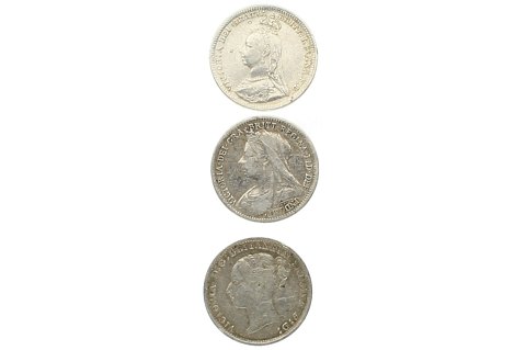 England, 3 pence, 1885, 1890, 1899, Victoria, sølv(3)