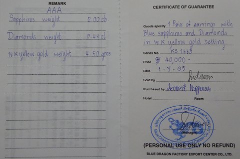 Safir 2 ct., brillanter 0,48 ct. ifølge certifikat