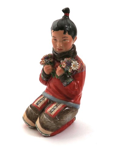 Royal Copenhagen, overglasur figur i form af knælende grønlænderpige, H. 15 cm, design Carl Martin-Hansen.