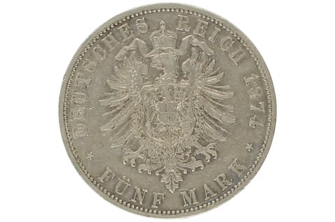Tyskland, Baden, 5 Mark, 1874 D, sølv