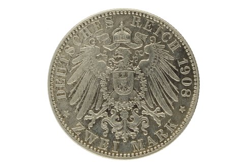 Tyskland, Hamburg, 2 Mark, 1908 J, sølv