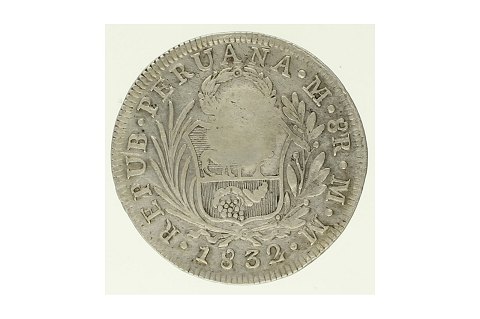 Peru, 8 Reales, 1832, sølv, 27.07 gr., .903, KM # 142.3 Kontra-markeret