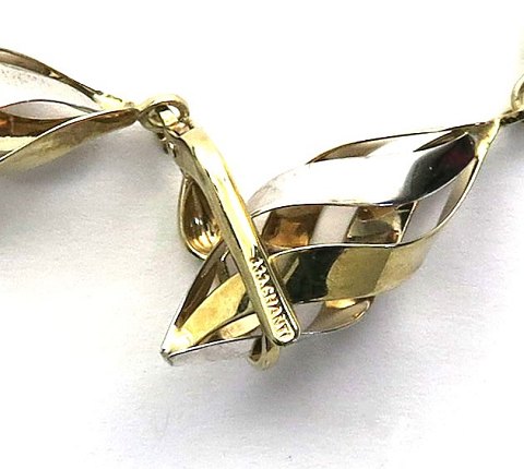 Par ørelokker af 8 kt. tofarvet guld i form af snoet dråbe. L. 38 mm., vægt ca. 2,5 gr.