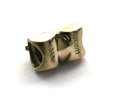 Chanti Charm af 8 kt. guld, tresidet form med frontdekoration. Hul til 4 mm. kæde eller læderbånd. L. 12 mm., vægt ca. 3 gr.
