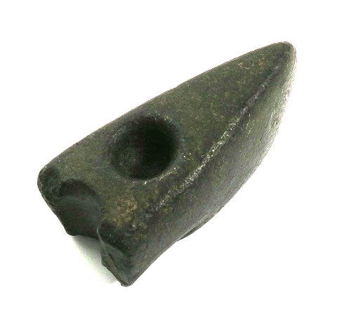 Fragment (forstykke) af skafthuls stenøkse med uddybning foroven. L. 11,5 cm. Neolitisk stenalder, fundsted Bjerringbro.