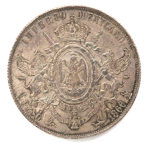 Mexico, Maximilian, Peso, 1866 Mo, sølv, 27.07 gr., .903, KM #388.1