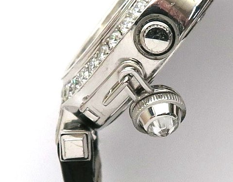 Cartier Pasha Collection damearmbåndsur, ref. nr. WJ11924G i urkasse af 18 kt. hvidguld. Diamantbesat lynette. Metalfarvet skive med arabertal og stregindikation, hængslet krone prydet med facetsleben diamant på ca. 0,25 ct. Quartzværk. Urkasse diameter 32 mm. Sort croco rem med dobbelt foldespænde.