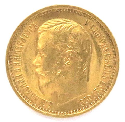 Rusland, Nicholas II, 5 Rubler, 1898, guld