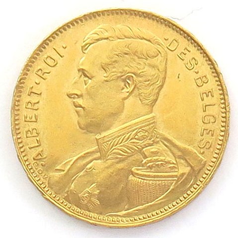 | Belgien, Albert I, 20 Francs, 1914, guld
