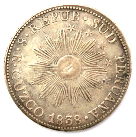 Peru, (Syd-Peru) 8 Reales, 1838 CUZCO MS, sølv