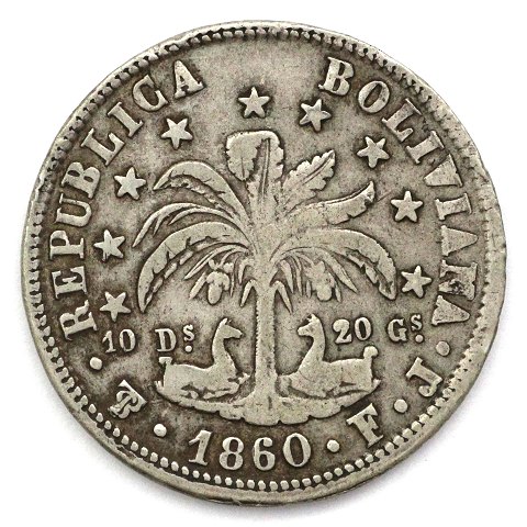 Bolivia, 8 Soles, 1860 PTS FJ, sølv, 20.00 gr., .903, KM# 138.6