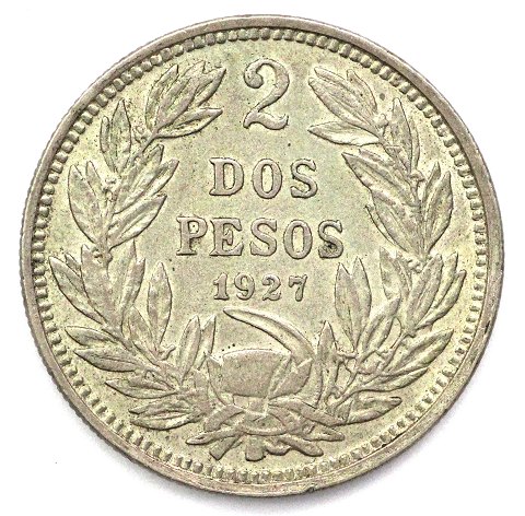 Chile, 2 Peso, 1927, sølv, 18.00 gr., .500, KM# 172