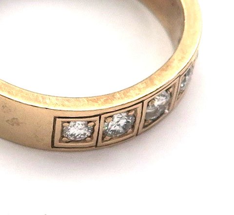 Ring af 14 kt. guld, prydet med 5 brillantslebne diamanter på hver 0,10 ct., samlet ca. 0,50 ct. Ring Str. 64½, samlet vægt ca. 8,5 gr.