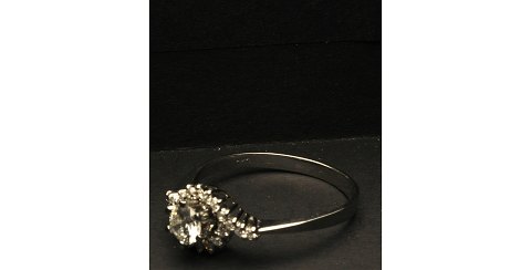 Ring af 14 kt. hvidguld med stor og mindre diamanter, samlet 0,75 ct.