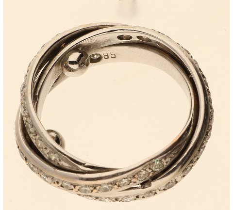 Ring af hvidguld 14 kt. 3-delt, prydet med 60 små brillanter