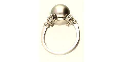 Ring af 18 kt. hvidguld, prydet med 8 brillanter, samlet ca. 0,5 ct. samt grå 11½ mm. perle. Ring Str. 56, samlet vægt ca. 8 gr.
