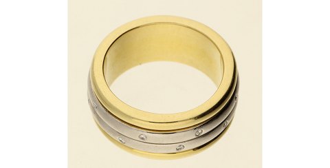4-dobbelt ring af 18 kt. guld og hvidguld, med 14 mindre diamanter, tilsammen ca. 0,07 ct. Ring Str. 55, B. 9 mm., samlet vægt ca. 19 gr.