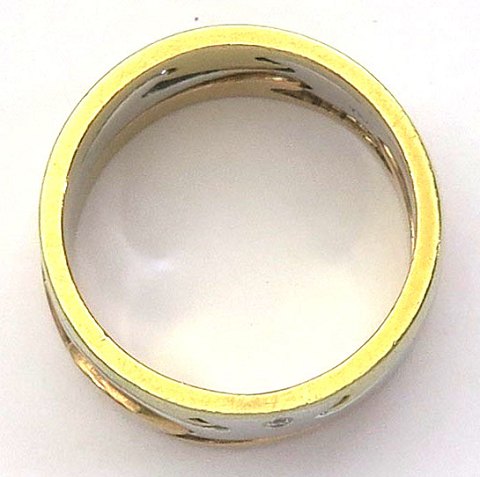 Tredelt ring af trefarvet 18 kt. guld
