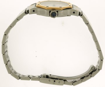 Klassisk damearmbåndsur i guld/stål fra Cartier m. romertal, safirglas, datoangivelse ved 3" markør, samt sekundviser. Quartz. Diam.: 25 mm.